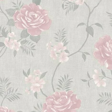 Muriva Botanical Garden Wallpaper Pink Rose Script Floral Butterfly