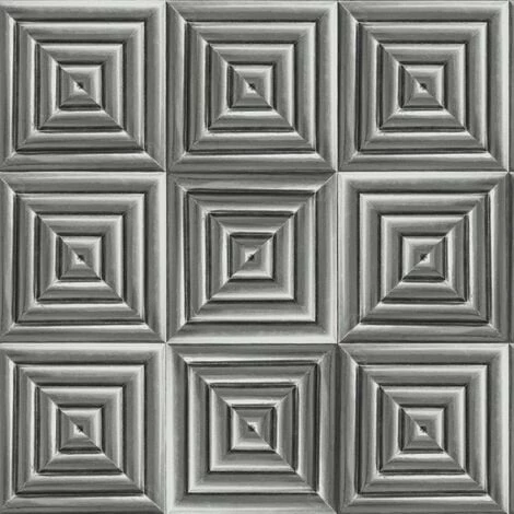 Design: 3D, Geometric, Metallic, Square. Design Repeat: 53cm. Easy Application, Paste the Wall, Straight Pattern Match. Finish: Sheen.