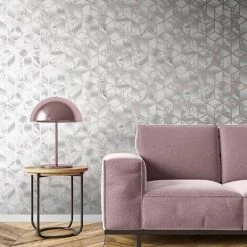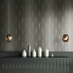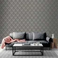 Charcoal Rose Gold Metallic Geometric Wallpaper Triangles Vinyl Muriva Kayla